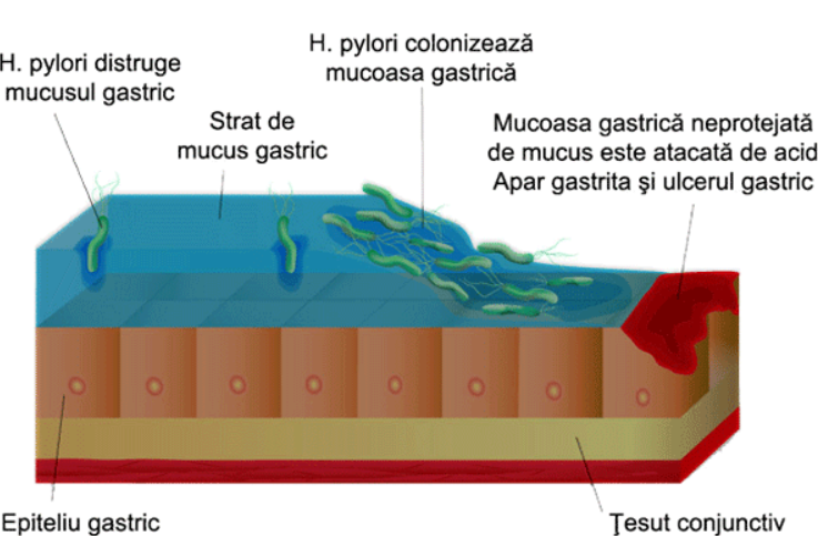 Există. Dar de aici să întreb dacă asta îmi va provoca gastrită sau cancer,nu se pune problema așa.În primul rând Helicobacter care este o bacterie și care trăiește acolo liniștită cu tine, care iubește mediul acid, dar tocmai acel mediu acid este ceea ce o menține mică.Când mediul tău acid este distrus prin luarea de bicarbonat de sodiu, de exemplu, stomacul care este căptușit cu celule ale mucoasei stomacului se numește epiteliu.